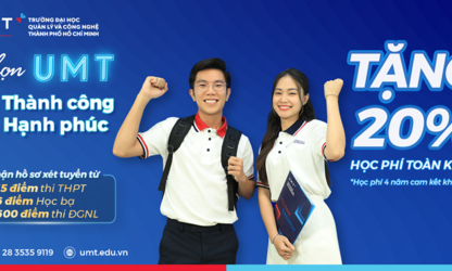 GD&TĐ - Trường Đại học Quản lý và Công nghệ TP.HCM (UMT) xây dựng nhiều chương trình tài chính thiết thực dành cho tân sinh viên: Tặng ngay 20% học phí toàn khóa cho tất cả các ngành; song song đó ngành Quản lý thể dục thể thao, Kinh doanh quốc tế và Bất động sản được tặng thêm Học bổng Doanh nghiệp trị giá 40 triệu đồng.