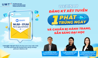 Ngày 22/7/2022, Trường Đại học UMT đã tổ chức Webinar trực tuyến trên Zoom và livestream trên Fanpage để hướng dẫn các bạn thí sinh đăng ký nguyện vọng xét tuyển và làm thế nào để chuẩn bị hành trang sẵn sàng học tập ở môi trường mới.