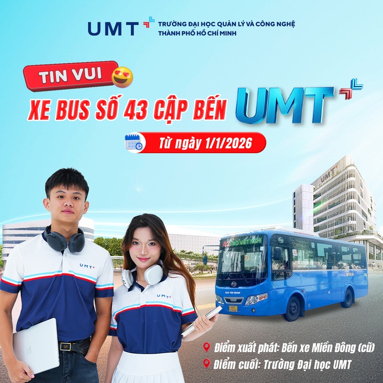Theo Quyết định số 1570/QĐ-SXD-QLVT của Sở Xây dựng TP.HCM, từ ngày 1/1/2026, Tuyến xe buýt 43 (TP.HCM) đã thay đổi lộ trình và chính thức mở rộng điểm cuối đến Trường Đại học UMT.