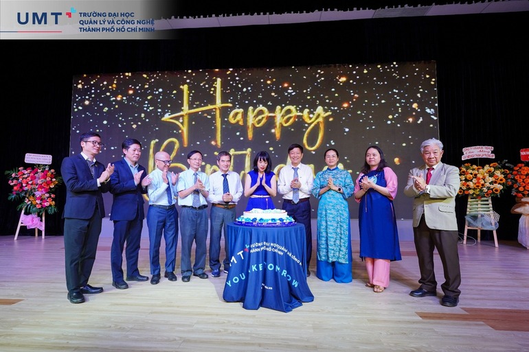 Phát biểu tại lễ kỷ niệm, ThS. Huỳnh Thúy Phương – Phó Hiệu trưởng Nhà trường nhấn mạnh ba định hướng chiến lược mà UMT kiên định theo đuổi trong giai đoạn phát triển mới: tuyển sinh, chuyển đổi số và vận hành/đào tạo xuất sắc. Theo đó, Nhà trường sẽ đẩy mạnh hoạt động tuyển sinh, xây dựng chương trình đào tạo gắn kết chặt chẽ với thực tiễn; đầu tư mạnh mẽ vào chuyển đổi số, ứng dụng công nghệ tiên tiến trong giảng dạy và quản lý; đồng thời tối ưu hóa quy trình vận hành, nâng cao hiệu quả phối hợp giữa các phòng ban để tạo nên một môi trường học tập năng động, hiện đại và bền vững.