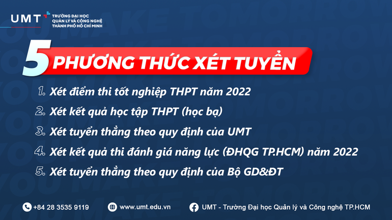 Điện thoại: 028 3535 9119; Email: tuyensinh@umt.edu.vn |