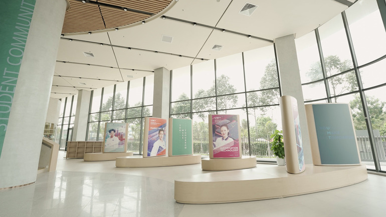Hiện tại UMT đang gấp rút hoàn thiện các tiện ích như canteen, thư viện, phòng tập Gym… hứa hẹn không chỉ là nơi chắp cánh tài năng cho sinh viên mà còn là địa điểm sống ảo đắt giá, không làm giới trẻ thất vọng đó nha.