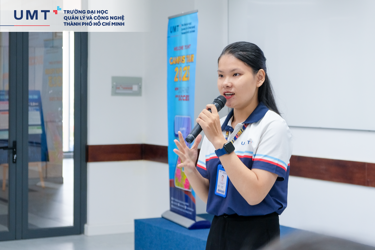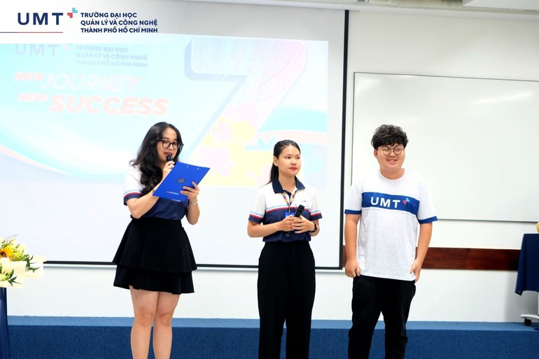 Đặc biệt, chương trình có phần giao lưu vô cùng thú vị của sinh viên đại diện các Khoa, Viện về câu chuyện “chọn UMT trong muôn vàn cánh cửa đại học”. Chia sẻ cảm nhận rất chân thật của bản thân các bạn về những trải nghiệm mới lạ, sôi nổi không chỉ trong quá trình học tập mà còn ở những cuộc thi đa sắc màu dành cho thế hệ sinh viên tiên phong UMT. Chương trình không thể không nhắc đến những màn “say hi” đầy tiếng cười của các bạn sinh viên: Võ Thị Ngọc Hân - Sinh viên ngành Marketing - Khoa Kinh doanh, Ông Thanh Bình - Sinh viên ngành Công nghệ thông tin - Khoa Công nghệ, Trương Phúc Khánh - Sinh viên ngành Quản lý thể dục thể thao - Viện Khoa học và Quản lý thể dục thể thao.