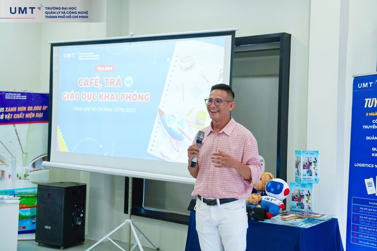️Bên cạnh, Chương trình Khai trương UMT cũng tổ chức Tọa đàm “Café, Trà và Giáo dục Khai phóng” tại không gian đa năng (30-40 chỗ ngồi) của Văn phòng. Với sự điều phối của các Giảng viên Trung tâm ONE UMT, mọi người đã có những trải nghiệm thú vị, mới mẻ thông qua hoạt động Brainstorming Corner, Cafe Show, Mini Game… một cách thoải mái để tiếp cận các góc nhìn mới, đa chiều hơn về Giáo dục Khai phóng tại UMT.