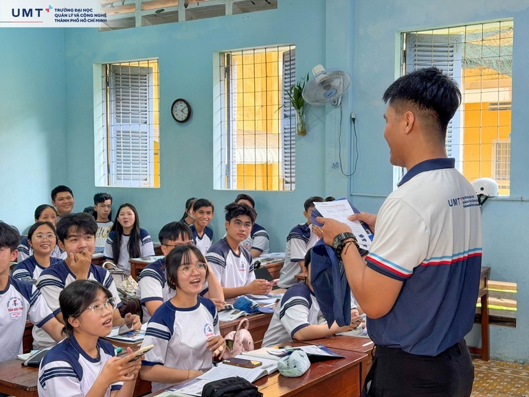 Giữa vùng đất nông nghiệp trù phú của Đồng bằng sông Cửu Long, UMT đã có dịp gặp gỡ và trò chuyện cùng học sinh THPT Đồng Tháp trong chương trình Tư vấn Hướng nghiệp - Tuyển sinh. Không khí buổi tư vấn xoay quanh những câu hỏi rất thực tế: Học ngành gì để dễ làm việc? Làm sao để nông sản quê hương đi xa hơn?