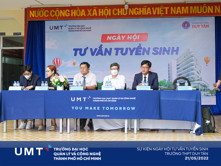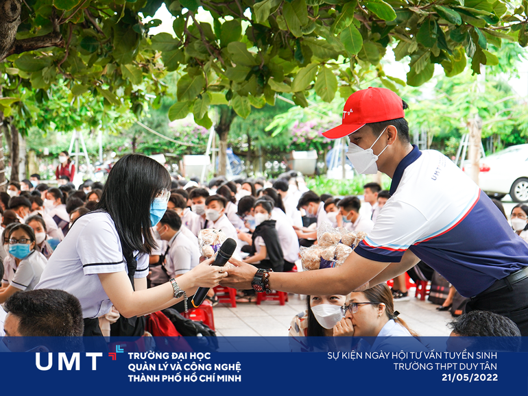 Ngày 21/5/2022, UMT đồng hành cùng Trường PT Duy Tân tổ chức Ngày hội dành cho các bạn học sinh lớp 12, giải tỏa áp lực trước những kỳ thi quan trọng và cập nhật thông tin tuyển sinh “hot” nhất hiện nay. Đặc biệt, các bạn được trải nghiệm từ xa các hoạt động đặc sắc của Trường ĐH UMT