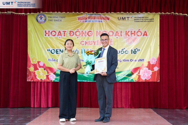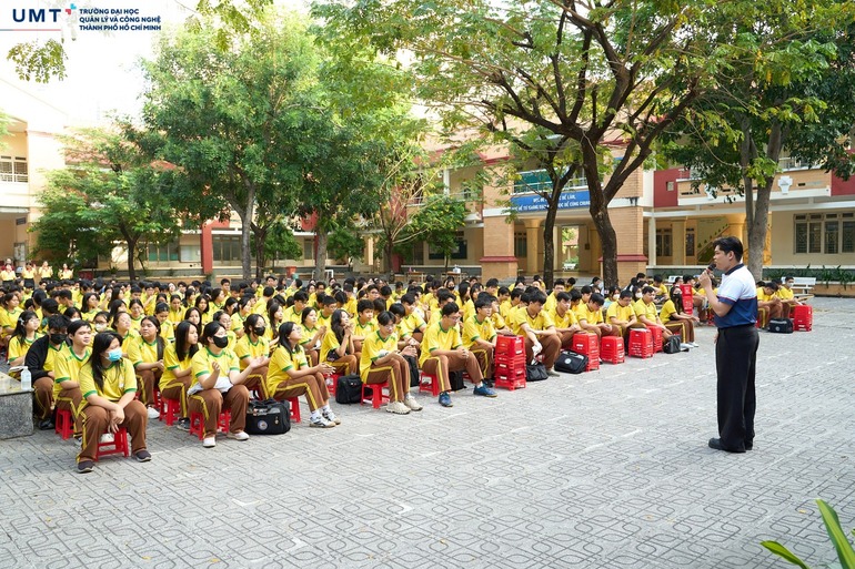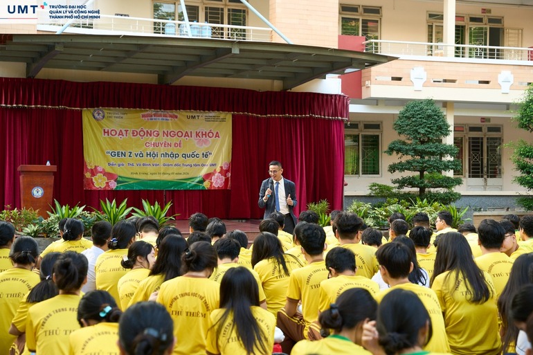 Vừa qua, Trường Đại học UMT đã có chuyến thăm Trường THPT Thủ Thiêm (TP.HCM) và tham gia buổi sinh hoạt ngoại khóa với chủ đề “Gen Z và hội nhập quốc tế”. Chương trình do ThS. Võ Đình Văn - Giám đốc Trung tâm One UMT, trực tiếp chia sẻ, nhằm góp phần định hướng tư duy và trang bị hành trang cần thiết cho học sinh trong bối cảnh hội nhập quốc tế sâu rộng.