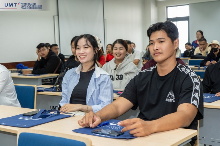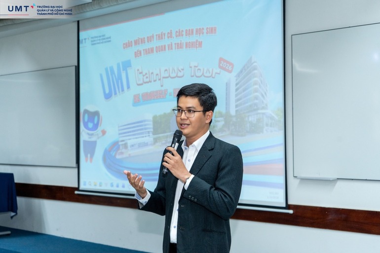 Trong khuôn khổ chương trình, buổi tư vấn tuyển sinh được tổ chức tại giảng đường tầng 8 đã mang đến nhiều thông tin thiết thực cho học sinh về chương trình đào tạo, phương thức xét tuyển và chính sách học bổng trị giá hơn 111 tỷ đồng năm 2026. UMT hiện đào tạo 10 ngành học tinh hoa với 24 chuyên ngành thời đại số, dự kiến xét tuyển theo 5 phương thức linh hoạt, đồng thời chú trọng định hướng chọn ngành thông qua các bài test tính cách, giúp học sinh lựa chọn lộ trình học tập phù hợp với năng lực và sở thích cá nhân.