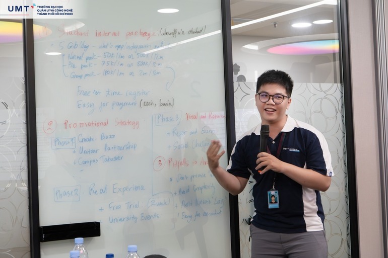 Đặc biệt, thử thách thiết kế gói dữ liệu dành riêng cho Gen Z đã mang lại một bài học sống động về marketing và quản lý sản phẩm thời công nghệ số. Những trải nghiệm thực tế với công nghệ tương tác, từ robot pha cà phê, phòng họp thông minh, máy giả lập lái xe đến trình chiếu 4K đã mang đến cảm giác "vượt khỏi khuôn khổ giảng đường".
