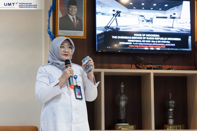 RRI – Truyền thông quốc gia và thông điệp thời đại: Ghé thăm Radio Republik Indonesia (RRI), sinh viên UMT có cơ hội tìm hiểu quy trình phát thanh, thực hành viết tin 5W1H, phỏng vấn và trở thành presenter chuyên nghiệp ngay tại studio đài tiếng nói quốc gia.