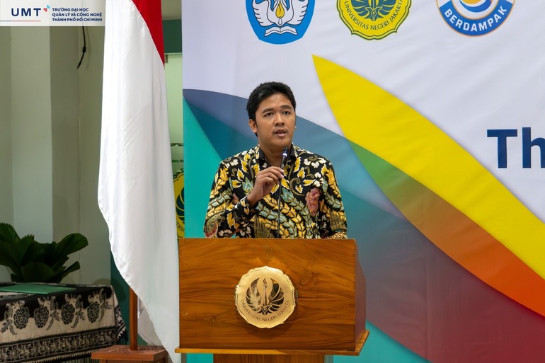 Phát biểu tại buổi lễ, cô Ns. Sri Rahayu, M.Biomed – đại diện Văn phòng Quốc tế Universitas Negeri Jakarta – gửi lời chúc mừng đến sinh viên UMT. Cô đánh giá cao sự chủ động, tinh thần cầu tiến và khả năng giao tiếp bằng tiếng Anh đầy tự tin của các bạn trẻ. Đồng thời, cô bày tỏ kỳ vọng mối quan hệ hợp tác giữa UNJ và UMT sẽ tiếp tục phát triển bền vững, mang lại cơ hội học tập và giao lưu đa chiều cho sinh viên hai trường trong tương lai.