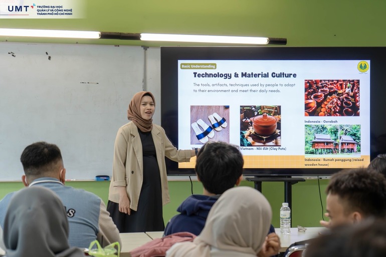 Đầu tiên, sinh viên UMT tham gia lớp Intercultural Communication (Giao tiếp liên văn hóa), nơi các bạn được tìm hiểu sâu về bản sắc, sự đa dạng và nghệ thuật giao tiếp trong môi trường toàn cầu. Không chỉ được trang bị các kỹ năng nhận diện, ứng xử phù hợp với các nền văn hóa khác nhau, các bạn còn học cách kết nối, xây dựng mối quan hệ và truyền tải thông điệp hiệu quả khi giao lưu quốc tế.