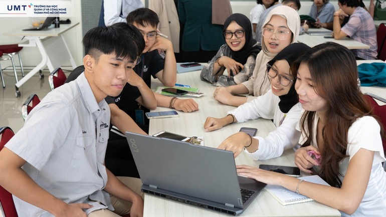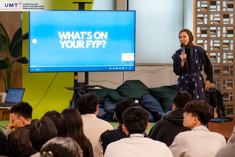 Tiếp nối là lớp Social Media Marketing, tập trung “bóc tách” những chiến lược làm chủ mạng xã hội – kỹ năng không thể thiếu trong thời đại số. Tại đây, các UMTers được tiếp cận quy trình sáng tạo nội dung, tìm hiểu về đặc thù từng nền tảng số, cũng như thực hành lập kế hoạch truyền thông và triển khai các dự án nhóm xoay quanh chủ đề trải nghiệm học tập quốc tế. Các buổi học không chỉ trang bị kiến thức chuyên môn mà còn khơi gợi tinh thần đổi mới, sáng tạo cho từng sinh viên.