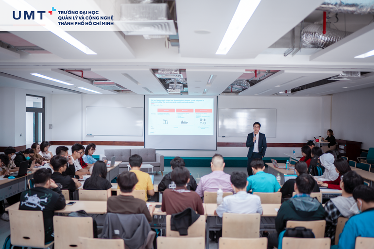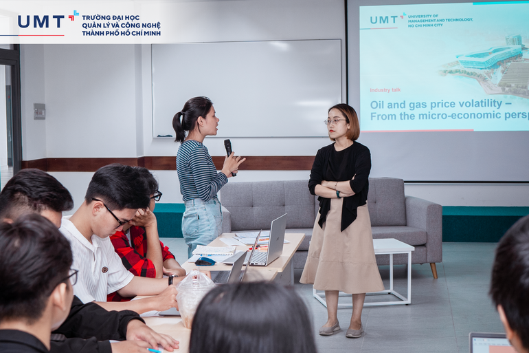 Trong khuôn khổ môn học Kinh tế vi mô ứng dụng, ngày 5/11/2022, UMT đã tổ chức Industry Talk với chủ đề “OIL AND GAS PRICE VOLATILITY”, các bạn sinh viên UMT được học tập và trao đổi về chủ đề biến động giá dầu và khí đốt qua các thời kỳ cùng giảng viên doanh nghiệp Anh Adrian Le - Trưởng nhóm Seller Programme, Shopee Việt Nam.