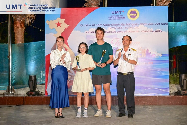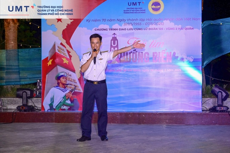 Tiếp nối chương trình là không gian giao lưu văn nghệ với những giai điệu sâu lắng, đậm chất lính biển. Những món quà sáp thơm handmade được chính tay sinh viên UMT trao tặng đến từng chiến sĩ Hải quân như một biểu tượng tri ân, gửi gắm tình cảm nồng ấm của tuổi trẻ dành cho những người lính đang ngày đêm canh giữ chủ quyền biển đảo. Đặc biệt, talkshow “Chuyện người lính biển” đã mở ra những câu chuyện chân thật, xúc động về cuộc sống gian nan nhưng đầy lý tưởng của người lính nơi đầu sóng ngọn gió. Những trải nghiệm ấy không chỉ truyền cảm hứng mạnh mẽ mà còn khơi dậy tình yêu và niềm tự hào về biển đảo quê hương trong lòng mỗi sinh viên.