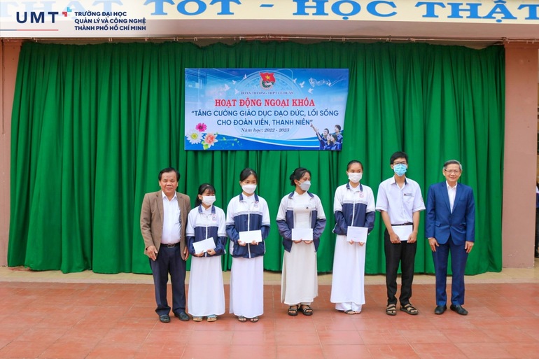 UMT cũng rất vinh dự khi nhận được sự ủng hộ và tin tưởng từ Ban Giám hiệu các Trường đã tạo điều kiện cho UMT trao tặng các suất Học bổng tuyển sinh giá trị bao gồm: Học bổng Unique (200 triệu đồng/suất), Học bổng Makers (170 triệu đồng/suất), Học bổng Thinkers (140 triệu đồng/suất) và Học bổng khuyến học dành cho các em học sinh vượt khó trị giá 500.000 đồng/suất.