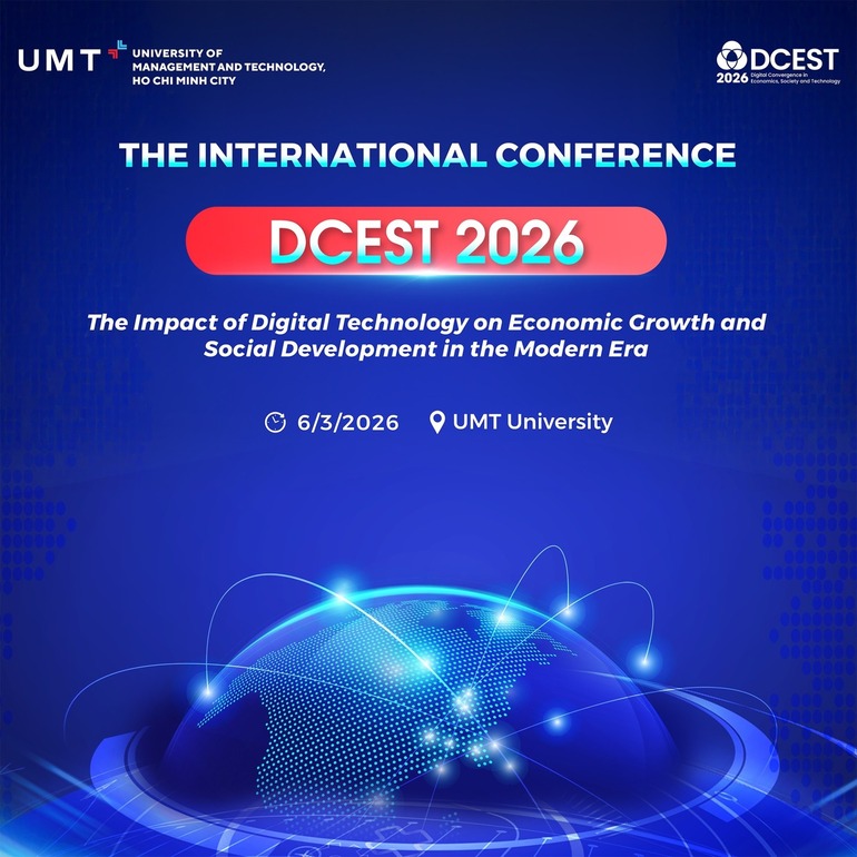 Tiếp nối thành công của DCEST 2024, Trường Đại học Quản lý và Công nghệ TP.HCM (UMT) chính thức công bố tổ chức Hội nghị Khoa học Quốc tế DCEST 2026 (Digital Convergence in Economics, Society and Technology), dự kiến diễn ra vào ngày 6/3/2026 tại Trường Đại học UMT.