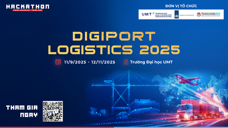 Trường Đại học Quản lý và Công nghệ TP.HCM (UMT) phối hợp cùng Lãnh sự quán Hà Lan và Công ty TNHH Phát triển Nguồn nhân lực Tân Cảng – STC chính thức khởi động Cuộc thi Hackathon Digiport Logistics 2025. Đây là sân chơi sáng tạo dành cho sinh viên trên toàn quốc, hướng tới tìm kiếm những giải pháp số hóa đột phá trong vận tải và Logistics cảng biển, góp phần xây dựng hệ thống Logistics thông minh và bền vững cho tương lai.