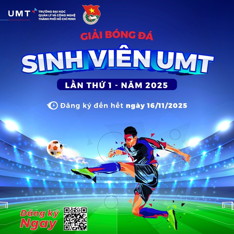 Hướng đến chào mừng 43 năm Ngày Nhà giáo Việt Nam 20/11 và tiếp tục lan tỏa phong trào thể thao trong cộng đồng sinh viên, Phòng Công tác sinh viên phối hợp cùng Đoàn TNCS UMT chính thức phát động Giải Bóng đá Sinh viên UMT lần thứ 1 năm 2025.