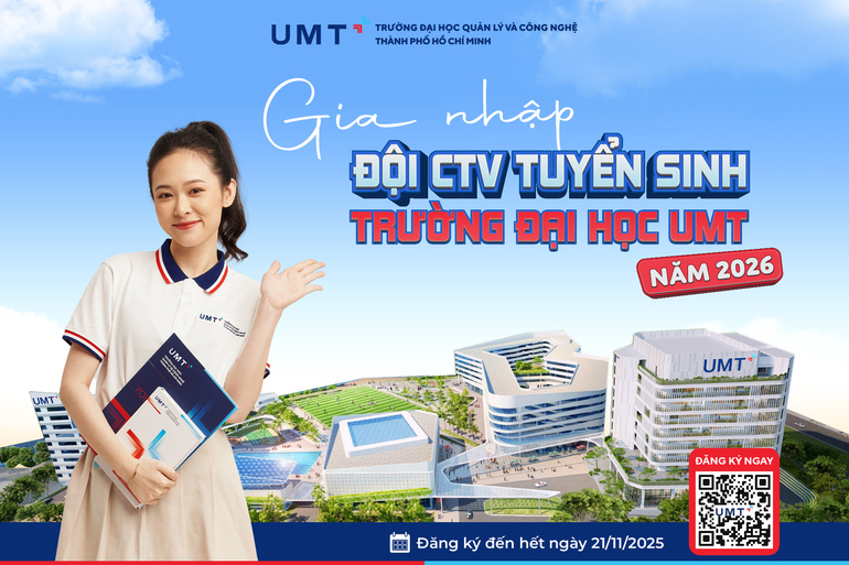 Trường Đại học Quản lý và Công nghệ TP.HCM (UMT) chính thức mở đăng tuyển CTV Tuyển sinh 2026, đây là đội ngũ sinh viên tiêu biểu đại diện hình ảnh Nhà trường trong các hoạt động hướng nghiệp, tuyển sinh của UMT.