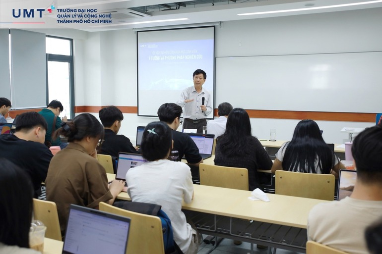 Vừa qua, Trường Đại học Quản lý và Công nghệ TP.HCM (UMT) tổ chức Hội nghị Nghiên cứu Khoa học sinh viên "Ý tưởng và phương pháp nghiên cứu", thu hút sự tham gia của sinh viên, giảng viên đam mê nghiên cứu khoa học. Sự kiện nhằm cung cấp kiến thức nền tảng, phương pháp nghiên cứu khoa học bài bản, đồng thời khơi dậy tinh thần sáng tạo và ứng dụng thực tiễn trong sinh viên.