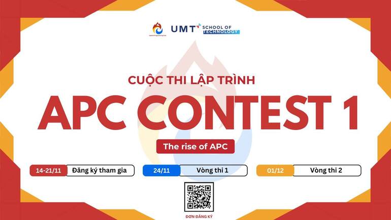 APC Contest do Câu lạc bộ Lập trình UMT (Khoa Công nghệ) tổ chức, hướng đến xây dựng một cộng đồng lập trình phát triển vững mạnh. Mỗi vòng thi đều là cơ hội để các bạn trẻ rèn kỹ năng, học hỏi và thử xem mình có thể đi xa đến đâu trong thế giới lập trình.