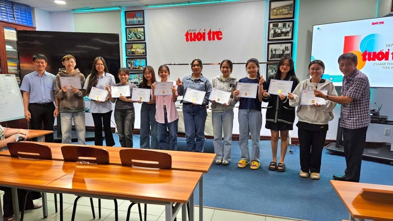 Tại buổi bế giảng, 100% sinh viên UMT hoàn thành xuất sắc khóa học và được trao giấy chứng nhận bởi Báo Tuổi Trẻ. “Mỗi buổi học tại tòa soạn là một thử thách, buộc chúng em phải thực hành liên tục, phối hợp nhóm, xử lý tình huống và rút kinh nghiệm. Nhờ đó, em hiểu rõ giá trị của sự tỉ mỉ và giữ bình tĩnh giữa môi trường truyền thông thực tế” - Minh Thư, sinh viên UMT chia sẻ.