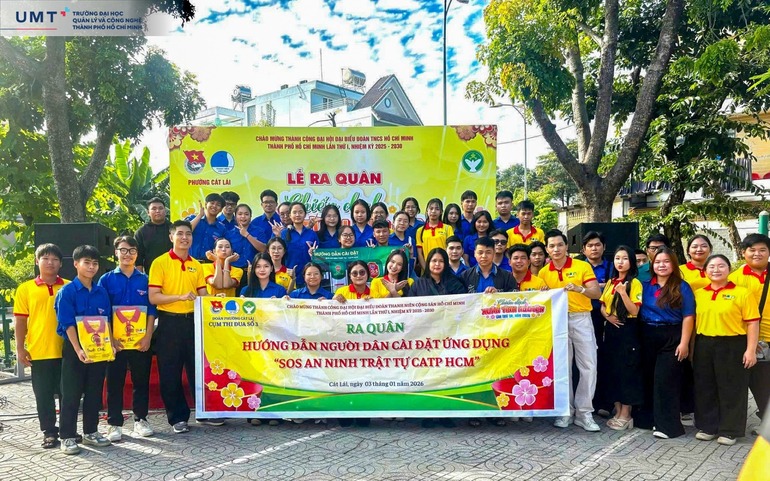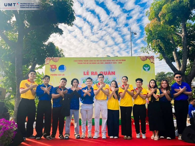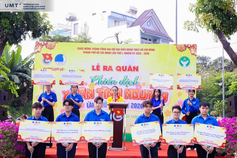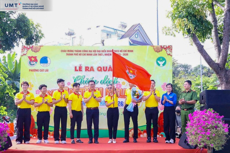 Sinh viên Trường Đại học Quản lý và Công nghệ TP.HCM (UMT) đã hào hứng tham dự Lễ ra quân Chiến dịch Xuân tình nguyện lần thứ 18 - năm 2026 do Đoàn Thanh niên phối hợp cùng Hội Liên hiệp Thanh niên Việt Nam Phường Cát Lái (TP.HCM) tổ chức, cùng hơn 200 chiến sĩ tình nguyện và đại diện các ban, ngành, đoàn thể địa phương.