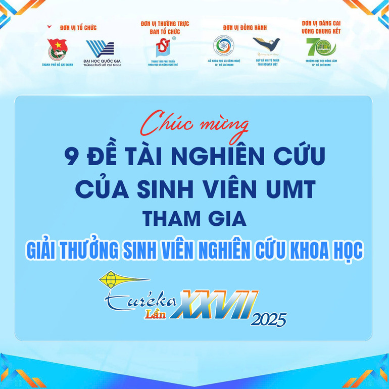 Năm 2025, sinh viên Trường Đại học Quản lý và Công nghệ TP.HCM (UMT) đã chính thức ghi danh tham dự Giải thưởng Euréka lần thứ 27 với 9 công trình nghiên cứu tiêu biểu, thể hiện sức sáng tạo và tư duy khoa học đa lĩnh vực:
