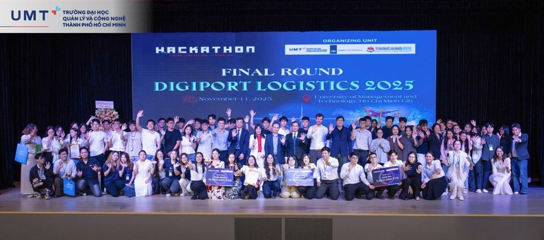 Ngày 11/11/2025, Lễ trao giải Chung kết cuộc thi Hackathon Digiport Logistics 2025 đã diễn ra sôi nổi tại Trường Đại học Quản lý và Công nghệ TP.HCM (UMT).