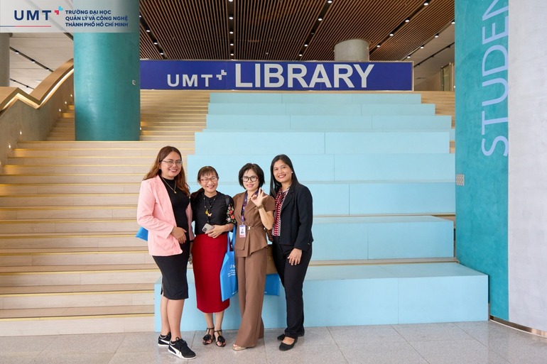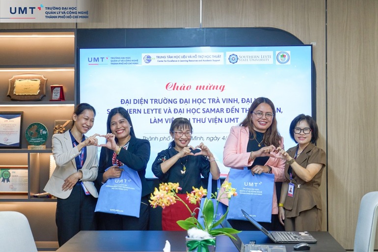 Vừa qua, Trường Đại học Quản lý và Công nghệ TP.HCM (UMT) hân hạnh đón tiếp đoàn đại biểu đến từ ba trường đại học: Trường Đại học Công lập Southern Leyte (Philippines), Trường Đại học Công lập Samar (Philippines), Trường Đại học Trà Vinh (Việt Nam). Chuyến thăm và làm việc mở ra cơ hội hợp tác trong lĩnh vực học thuật, đặc biệt là vận hành thư viện và trung tâm học liệu – yếu tố cốt lõi trong hệ sinh thái đào tạo đại học hiện đại.