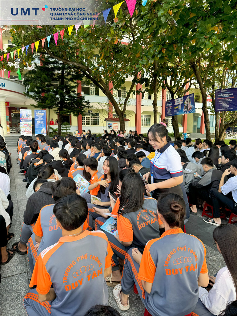 Tiếp tục hành trình đồng hành cùng học sinh trong việc định hướng tương lai, Trường Đại học Quản lý và Công nghệ TP.HCM (UMT) vừa có chuyến tư vấn tuyển sinh tại Trường Phổ thông Duy Tân (Phú Yên). Chương trình mang đến những thông tin quan trọng về ngành học, cơ hội nghề nghiệp và các chính sách hỗ trợ tài chính của UMT.