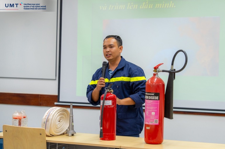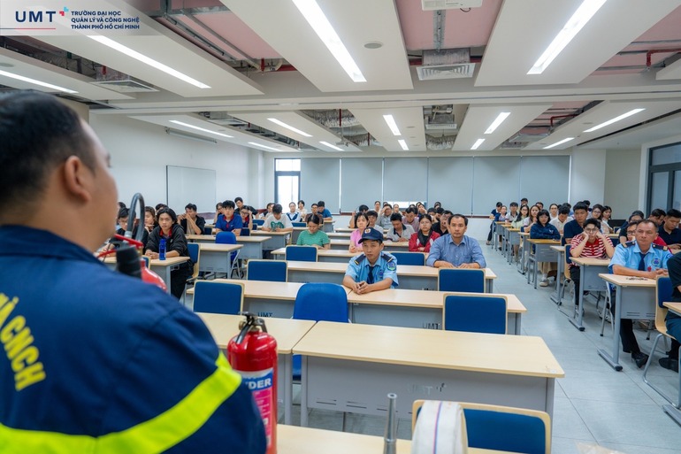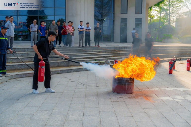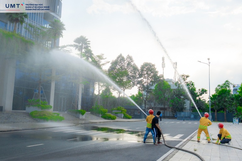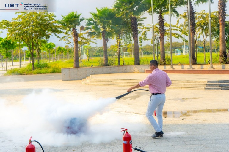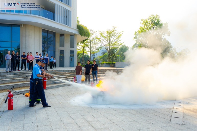 Vừa qua, Trường Đại học Quản lý và Công nghệ TP.HCM (UMT) đã phối hợp cùng Đội Cảnh sát Phòng cháy, chữa cháy (PCCC) và Cứu nạn, cứu hộ (CNCH) Khu vực 2 – Phòng PC07, tổ chức chương trình tập huấn và diễn tập PCCC cho toàn thể giảng viên, nhân viên và sinh viên Nhà trường tại khuôn viên UMT.