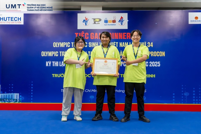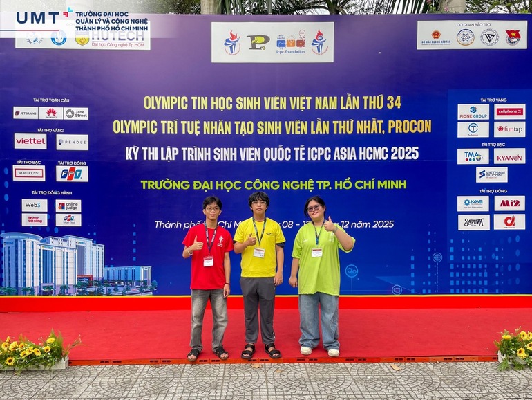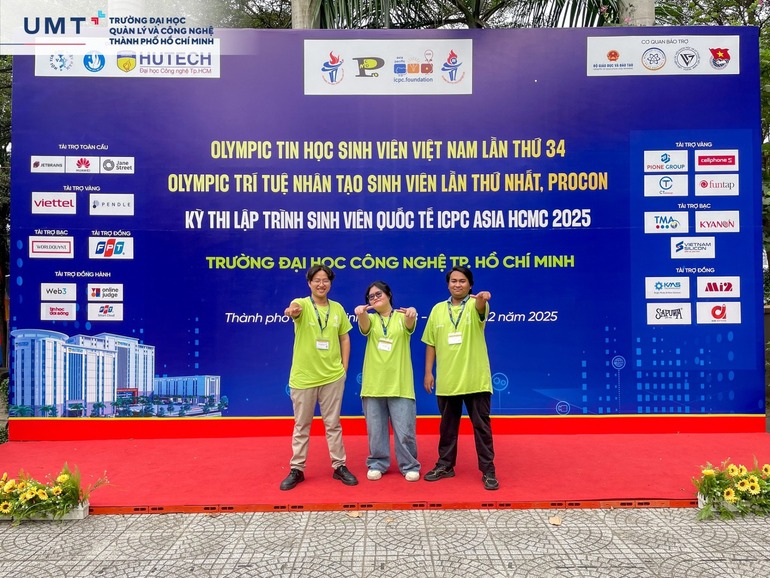 Đáng chú ý, năm nay, sinh viên UMT đã tham gia đầy đủ các nội dung thi thuộc khuôn khổ OLP’25 như OLP Chuyên Tin, Siêu Cúp, Olympic Trí tuệ Nhân tạo (OLP’AI), Procon Việt Nam và ICPC Asia Ho Chi Minh City (vòng khu vực). Việc hiện diện ở tất cả các bảng thi cho thấy tinh thần học thuật nghiêm túc, khát vọng khám phá và sự chủ động của sinh viên UMT trong việc cọ xát với những thử thách lớn. Đây là nền tảng quan trọng để UMT tiếp tục bồi dưỡng các đội tuyển lập trình mạnh trong những mùa giải tiếp theo.