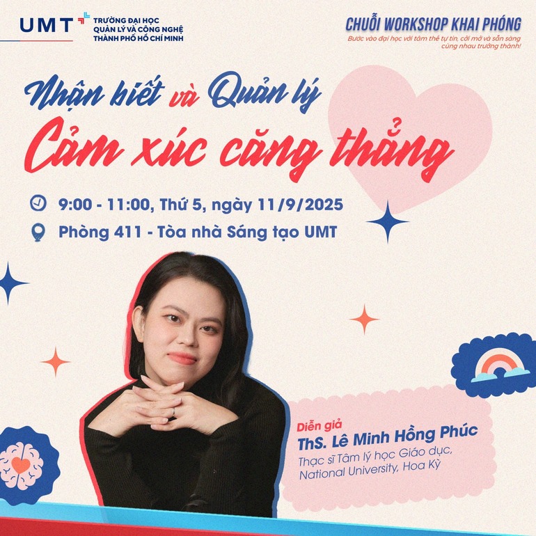 Bước vào cánh cửa Đại học, Tân sinh viên dễ bị quá tải bởi những cảm xúc đan xen: háo hức, bỡ ngỡ, áp lực… Workshop 7: Nhận biết và Quản lý Cảm xúc Căng thẳng chính là khoảng dừng để các bạn hít thở, lắng nghe và học cách detox tinh thần một cách nhẹ nhàng, hiệu quả.
