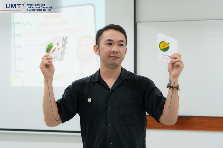 Dẫn dắt buổi chia sẻ là Diễn giả Nguyễn Minh Nam - Thạc sĩ Giáo dục chuyên ngành Integrated Arts - Đại học Plymouth State, Hoa Kỳ. Với nền tảng chuyên môn và nhiều năm kinh nghiệm, diễn giả Minh Nam đã truyền tải đến UMTers một thông điệp mạnh mẽ: “Ghi chú cũng có thể trở thành một hành trình sáng tạo và khám phá bản thân”.
