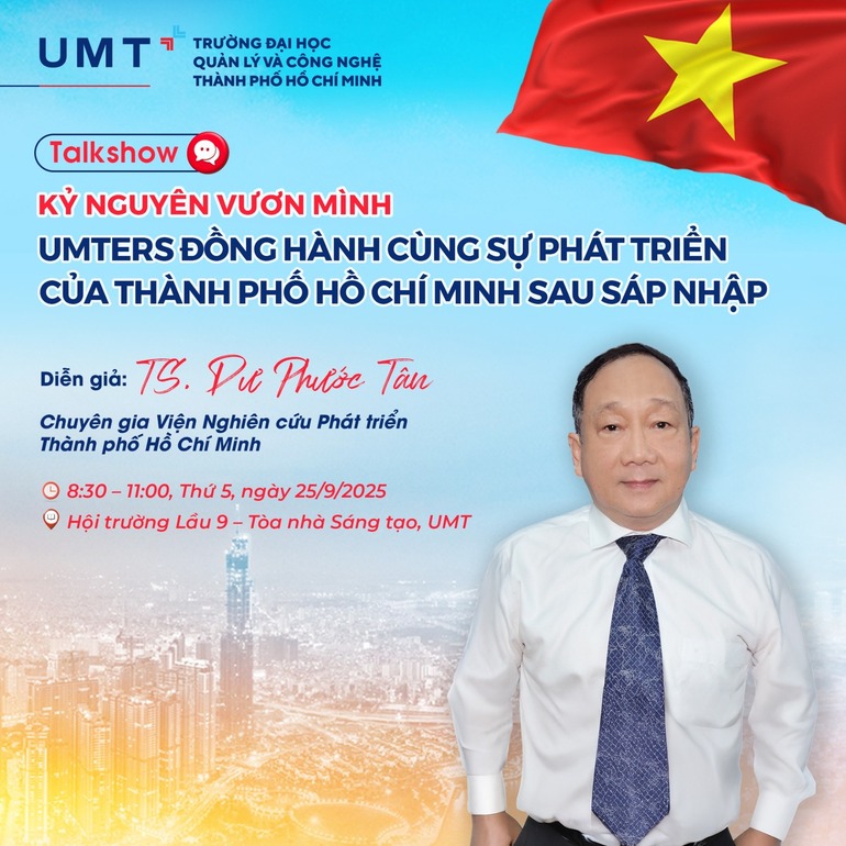 Trước sự chuyển mình của TP.HCM sau sáp nhập, Talkshow sẽ là một buổi trò chuyện thú vị và giàu thông tin, nơi UMTers được lắng nghe, tìm hiểu và cùng trao đổi về những thay đổi mang tính bước ngoặt của thành phố cũng như đưa ra cho mình mục tiêu tương lai gắn với sự phát triển của đất nước trong giai đoạn hiện nay.