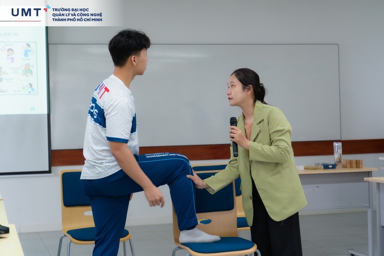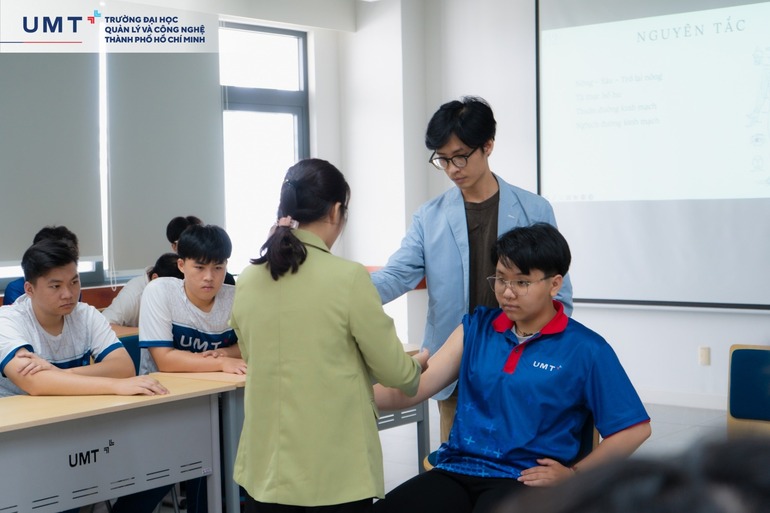 Ngoài ra, UMTers còn được trang bị kỹ năng tự chăm sóc bản thân và hỗ trợ người khác, đây là hành trang thiết thực cho đời sống sinh viên xa gia đình. Với thông điệp “Người bệnh là người thầy quan trọng”, Bác sĩ Ngân khuyến khích mỗi người nên biết quan sát, thấu hiểu và trân trọng những tín hiệu từ cơ thể, như một cách “tự chữa lành” và yêu thương bản thân đúng cách.