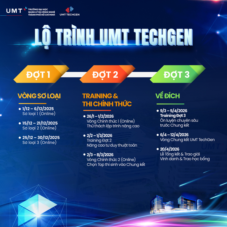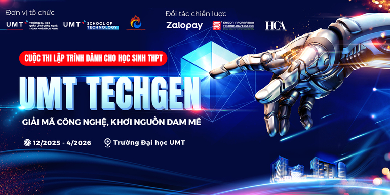 Sau vòng Sơ loại 1 đầy sôi động, Cuộc thi UMT TechGen đã ghi nhận hàng trăm lượt đăng ký từ học sinh THPT trên khắp cả nước, cho thấy sức hút mạnh mẽ của sân chơi lập trình do Trường Đại học Quản lý và Công nghệ TP.HCM (UMT) tổ chức.