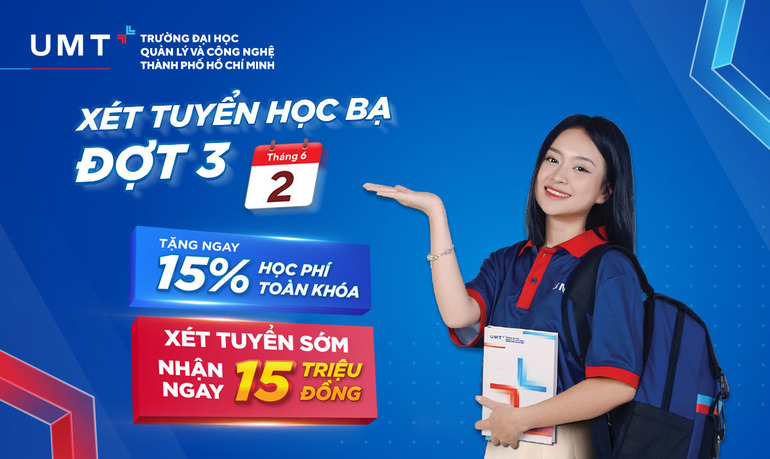 Vào ngày 2/6/2023, Hội đồng Tuyển sinh Trường Đại học Quản lý và Công nghệ TP.HCM (UMT) đã chính thức công bố kết quả xét tuyển sớm Đợt 2 năm 2023 theo các phương thức xét tuyển Học bạ THPT, Tuyển thẳng theo quy định của UMT và Xét điểm thi ĐGNL của ĐHQG TP.HCM. Đồng thời, Nhà trường đã nhận hồ sơ xét tuyển đợt tiếp theo vào các ngành đào tạo thuộc hệ Đại học chính quy: Công nghệ, Quản lý, Kinh doanh và Truyền thông từ ngày 2/6.