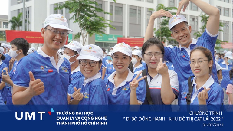 Chương trình “Đi bộ đồng hành - Khu đô thị Cát Lái 2022” đã diễn ra vào sáng Chủ nhật, ngày 31/7/2020, tại Khu dân cư Kiến Á (Chung cư Citisoho, Chung cư Citiesto) với lộ trình 3 km và có hơn 1.500 tham gia, trong đó có sự góp mặt đông đảo của GVNV Trường Đại học UMT. UMT hy vọng đây là môi trường sống tốt với nhiều trải nghiệm ý nghĩa dành cho các bạn sinh viên UMT trong thời gian tới.