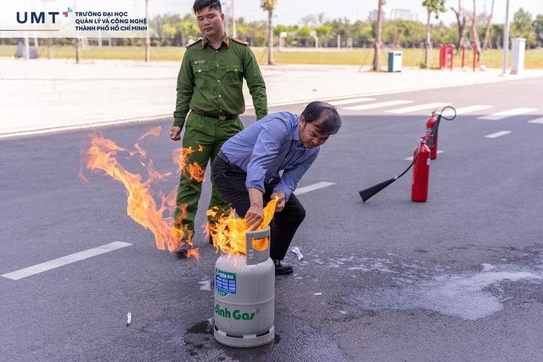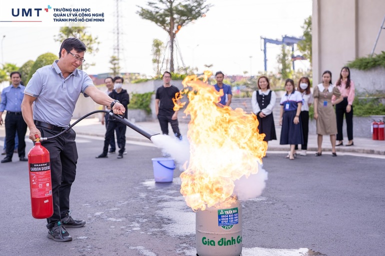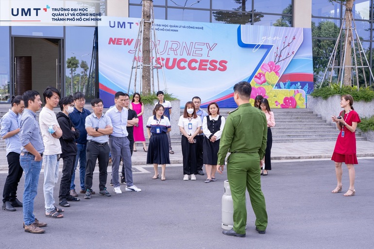 Với sự hướng dẫn của lực lượng Công an TP. Thủ Đức, Công an Phường Cát Lái và chỉ đạo sâu sát của Ban Lãnh đạo Trường Đại học UMT, buổi tập huấn PCCC ngày 17/3/2023 đã thành công tốt đẹp. UMT sẽ tiếp tục tăng cường tinh thần cảnh giác, phòng chống cháy nổ, bảo vệ cơ sở vật chất và đảm bảo an toàn cho GVNV, sinh viên của Nhà trường.
