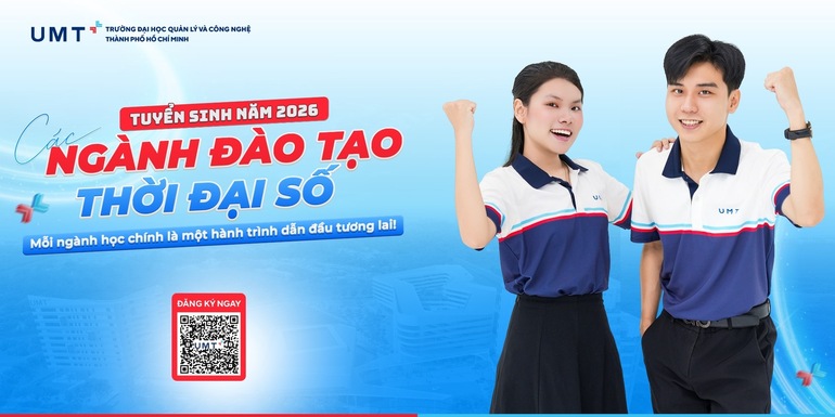 Năm 2026, Trường Đại học Quản lý và Công nghệ TP.HCM (mã trường: UMT) mở rộng quy mô tuyển sinh 10 ngành đào tạo bậc đại học với dự kiến 24 chuyên ngành được thiết kế bám sát xu hướng phát triển của thời đại số.