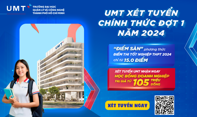Từ ngày 18/7/2024, thí sinh hãy nhanh chóng nộp đơn xét tuyển vào UMT để có cơ hội nhận ngay HỌC BỔNG DOANH NGHIỆP trị giá từ 105 TRIỆU ĐỒNG.