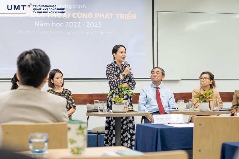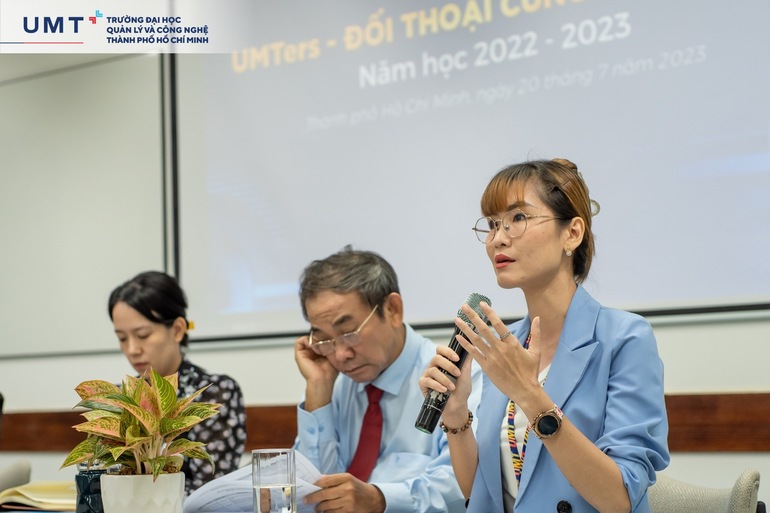 ThS. Huỳnh Thúy Phương - Phó Chủ tịch Thường trực Hội đồng Trường, Phó Hiệu trưởng Điều hành UMT chia sẻ: “Cô thật sự rất cảm ơn các bạn sinh viên tiên phong đã đồng hành cùng UMT, thấu hiểu cho những khó khăn trong giai đoạn đầu của Trường. Ban Lãnh đạo Nhà trường sẽ luôn ghi nhận mọi đóng góp tích cực từ sinh viên và không ngừng nỗ lực để mang đến môi trường học tốt nhất dành cho sinh viên của mình. Hy vọng trong những chương trình đối thoại sắp tới, Ban Lãnh đạo UMT sẽ không phải giải đáp quá nhiều thắc mắc, băn khoăn của các bạn nữa, thay vào đó các bạn sinh viên UMT sẽ là những Founder, Leader của những dự án phát triển UMT và thầy cô sẽ lắng nghe, góp ý và đồng hành cùng các bạn thực hiện những dự án đó”.