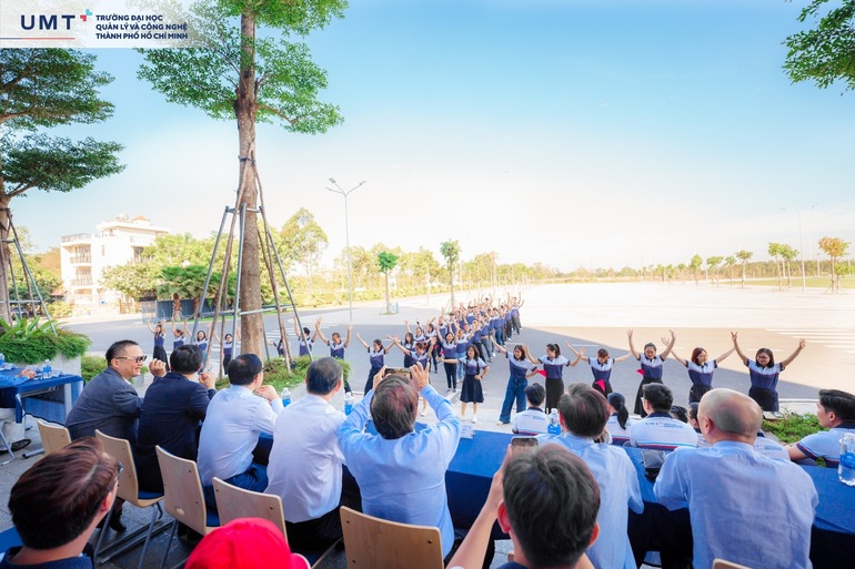 Đặc biệt, tập thể GVNV UMT đã đồng lòng tập luyện và trình diễn Flashmob ca khúc “Sẻ chia những khoảnh khắc” như một món quà tinh thần, gửi lời cảm ơn sâu sắc đến Ban Lãnh đạo và chào mừng UMT thêm tuổi mới. Bên cạnh đó, tiết mục Flashmob còn thể hiện sự cam kết gắn bó, sẻ chia và đồng hành cùng nhau của tập thể UMT.