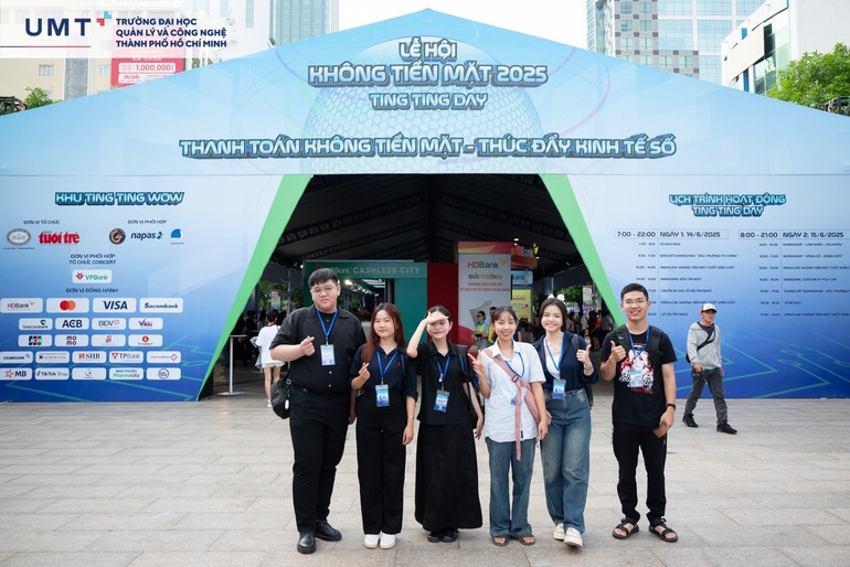 Tại đây, sinh viên UMT đã có cơ hội đặc biệt khi tham gia với vai trò cộng tác viên tại “Ngày Không Tiền Mặt 2025” – sự kiện thường niên quy mô lớn do Báo Tuổi Trẻ phối hợp cùng Napas và Vụ Thanh toán – Ngân hàng Nhà nước tổ chức tại Phố đi bộ Nguyễn Huệ, TP.HCM.