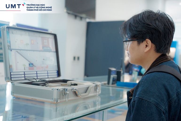 Ngoài cơ hội được giao lưu với những trí tuệ Việt đến từ Vườn ươm Doanh nghiệp Công nghệ cao, UMTers còn được khám phá các sản phẩm thuộc dự án khởi nghiệp đã và đang được ươm mầm tại SHTP-IC, tìm hiểu quá trình hoạt động của máy in 3D, máy khắc chữ thông minh, hệ thống chống rung cầm tay và trên máy bay điều khiển từ xa được phát triển bởi Công ty Gremsy…