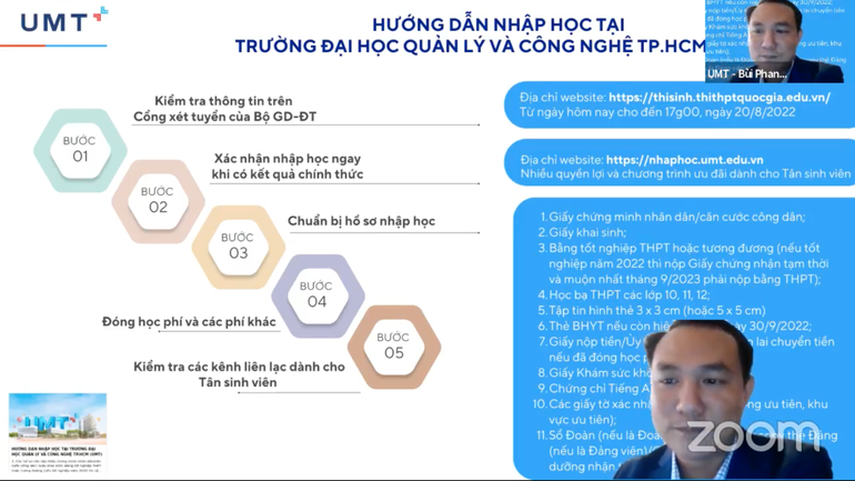 Ngày 20/8/2022 sẽ hết hạn đăng ký xét tuyển nguyện vong, do đó mở đầu Webinar ThS. Bùi Thị Hương Thảo - Phó trưởng Phòng Đào tạo, Trường Đại học UMT đã có một số giải đáp và cập nhật những thông tin mới nhất về xét tuyển cho các bạn học sinh.