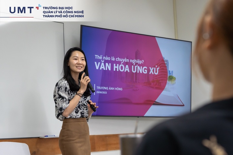 Chiều ngày 29/6/2023, UMT tổ chức Workshop “Văn hóa ứng xử - Thế nào là chuyên nghiệp?” cùng diễn giả Trương Ánh Hồng - Project Manager, Consultant, Trainer, Công ty TNHH Tích hợp Hệ thống Quản lý Quốc tế (Gimasys).